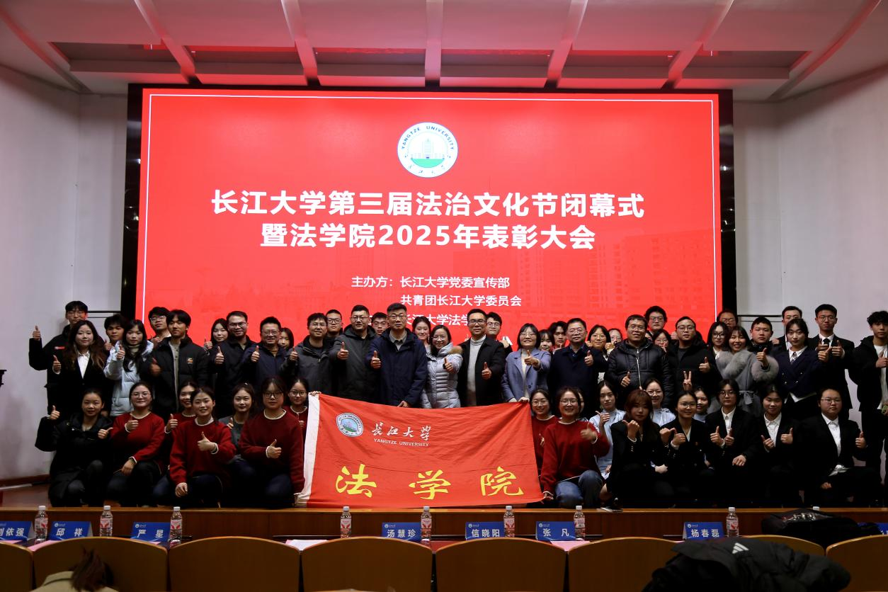 (通讯员文/李玉豪 图/何梦秋 杨翔茹 杨欣瑶 黄淇琪)“法治不是课本上的冰冷法条,是三年里我们用脚步丈量的责任,用热爱坚守的信仰!”2025 年 12 月 26 日晚,长江大学东校区 12 教 405 报告厅内掌声雷动,第三届法治文化节闭幕式暨法学院 2025 年表彰大会正式启幕。党委宣传部副部长汤慧珍、校团委副书记信晓阳与法学院全体师生齐聚一堂,共同见证这场青春与法治交融的盛会,大会由周清鄂、袁野联袂主持。三载深耕:校社联...