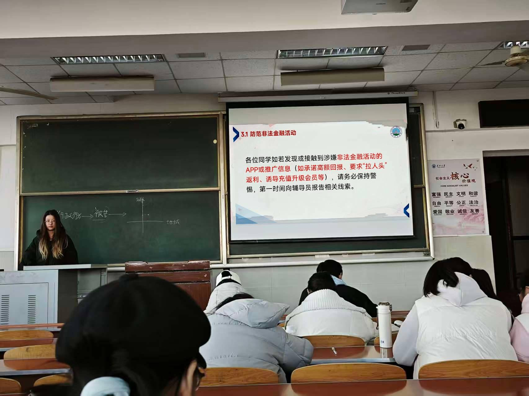 金融安全环节聚焦校园贷、非法集资等高频诈骗形式。安全委员深入剖析了各类金融诈骗的伪装手段——如承诺高额回报、要求“拉人头”返利、诱导充值升级会员等,揭示了其对个人财产、信用记录乃至家庭生活的严重危害。同时,引导同学们树立理性消费观念,养成量入为出的消费习惯,珍惜个人信用记录,如发现涉嫌非法金融活动的APP或推广信息,需第一时间保持警惕并向辅导员报告相关线索。