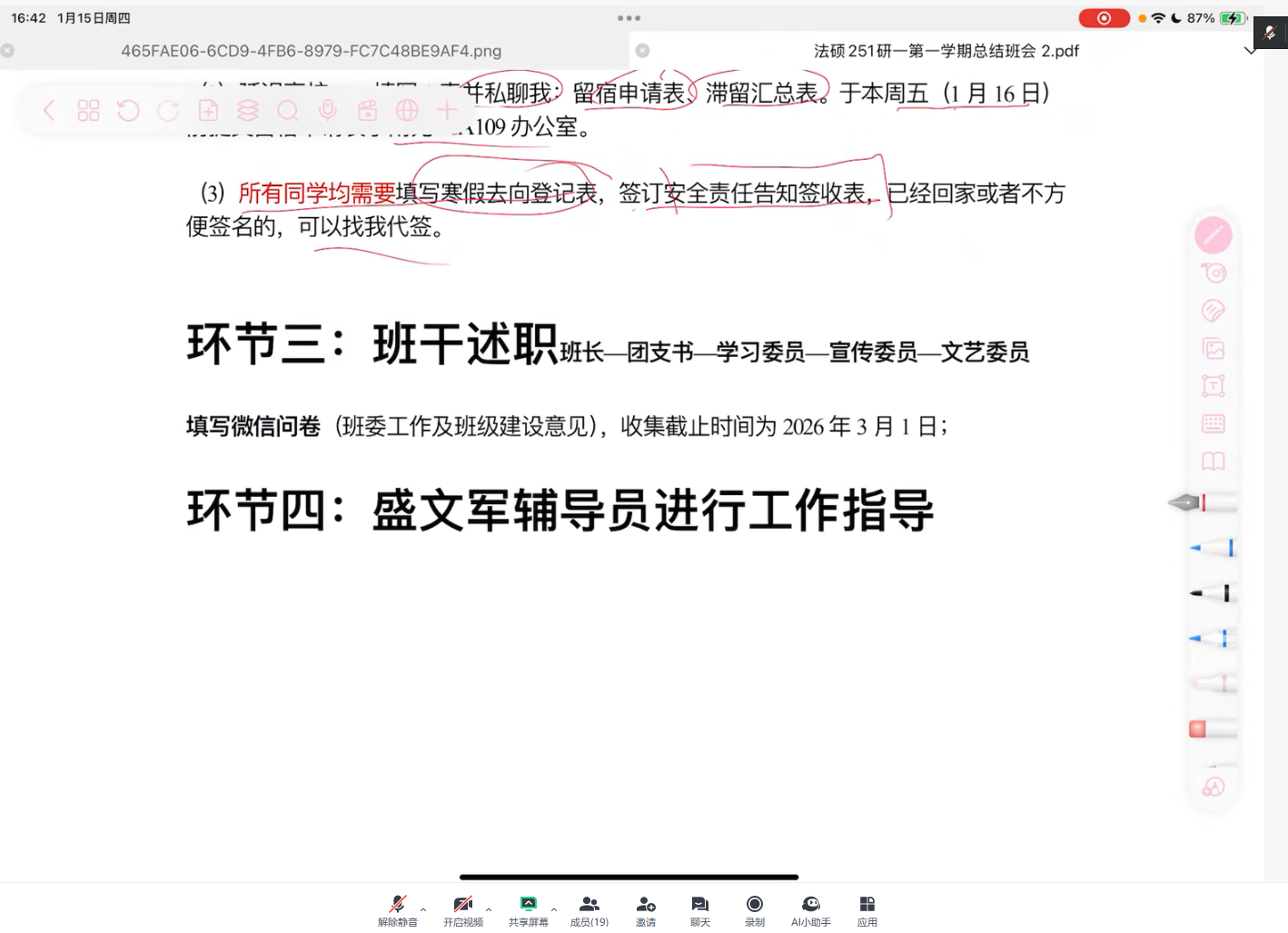 (通讯员 刘瑞)岁末将至,寒假临近。为切实筑牢学生安全防线,增强学生安全防范意识与自我保护能力,保障全体同学度过一个平安、祥和、充实的假期,1月14日,法学院组织研究生与本科生各班级集中开展寒假安全教育主题班会,为同学们的假期安全保驾护航。