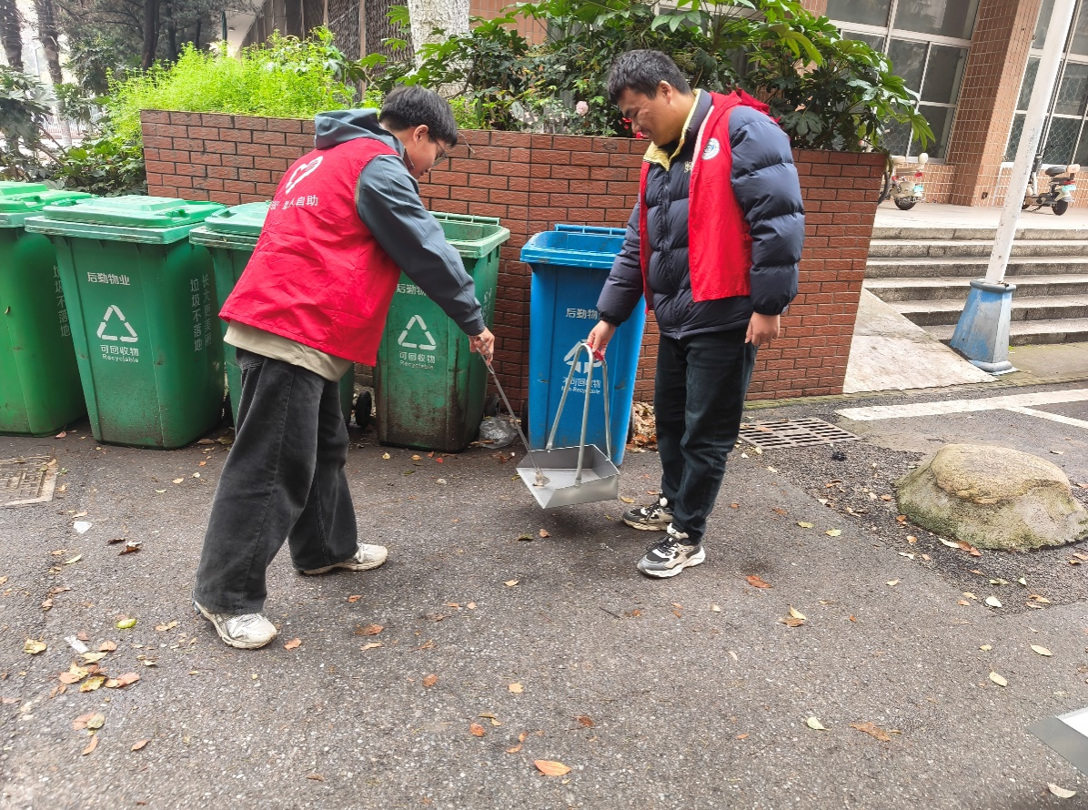 活动筹备阶段,熠阳青年志愿者服务支队结合校园东西两区实际环境特点,科学划分劳动区域、细化人员分工,明确法学32504班负责西区河滨区域与里仁堂周边的清扫工作,法学12403班承担东区大礼堂及体育馆周边的环境整治任务。同时,支队提前备齐扫帚、铁钳等清洁物资,为劳动实践活动的安全、有序、高效开展筑牢保障。