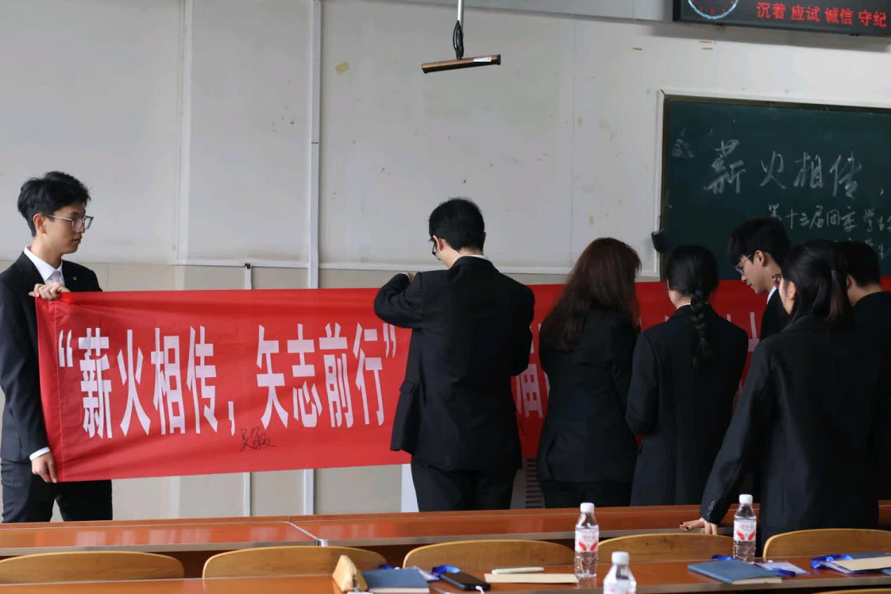 最后,第十四届团委学生会全体成员有序在印有 “薪火相传,矢志前行” 的横幅上郑重签名,以笔墨立下承诺,以行动践行使命。至此,长江大学法学院第十三届团委学生会总结大会暨第十四届团委学生会成立大会圆满落幕。