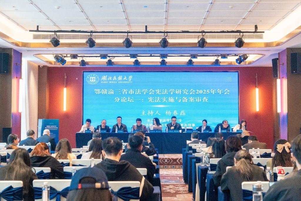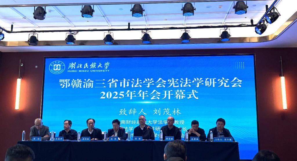 (通讯员 杨春磊)2025年11月15日,鄂赣渝三省市宪法学研究会2025年年会由湖北民族大学法学院承办,在恩施土家族苗族自治州召开。本次年会主题为“健全保证宪法全面实施制度体系”,来自湖北省、江西省、重庆市的二十多所高校和实务部门的专家学者参加了此次会议。