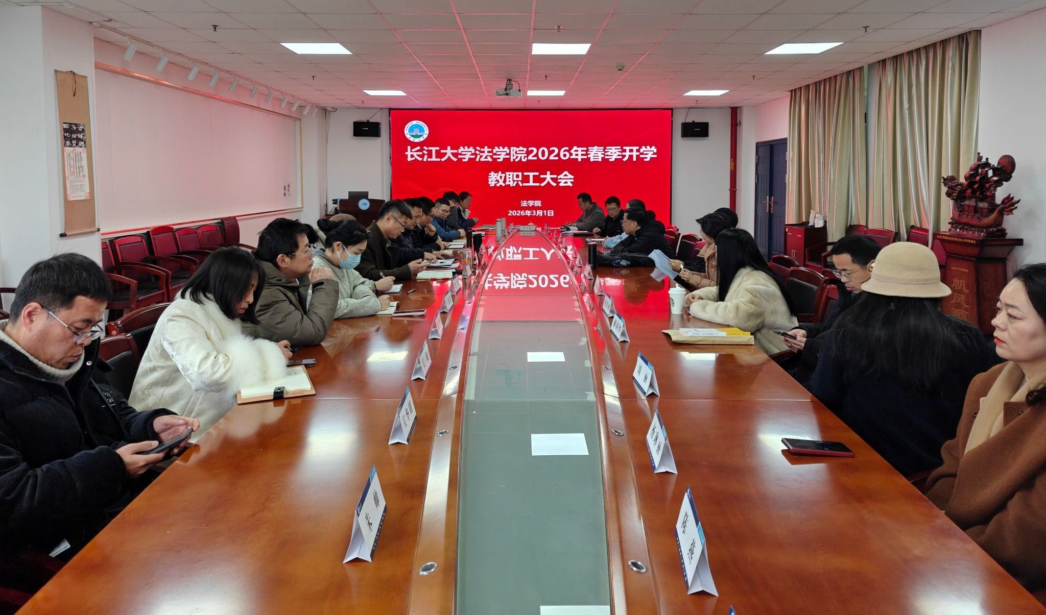 (通讯员 雷礼)春回大地,万象更新。3月1日,长江大学法学院在文科楼1110会议室召开2026年春季学期第一次全体教职工大会,学习贯彻学校新学期工作相关会议精神,全面动员和安排新学期重点任务,确保全年工作高标准起步、高质量推进。学院班子及全体教职工参加,会议由院长李华成主持。