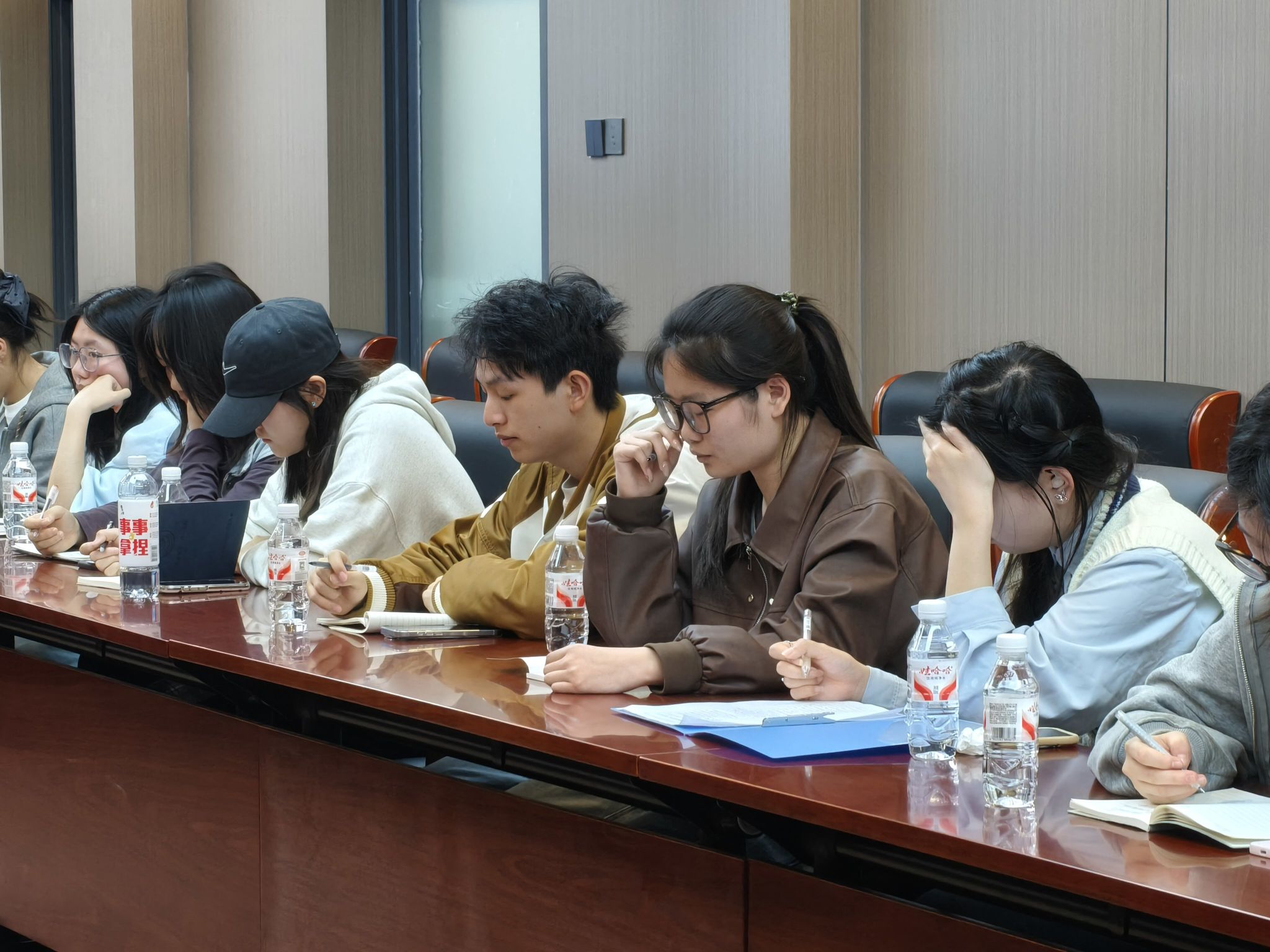 没有客套,直奔主题。法学32502班柯旎希望课堂多一些案例与时政热点;法学32504班苏俊逸直言宿舍热水供不应求、晚自习管理太死板;转专业班级代表龚妍雯更着急——课程衔接难、跨校区奔波,学习压力山大。电动车乱停、图书馆占座、外卖被拿错、英语听力时间不合理……一件件具体而微的小事,都成了座谈会上被郑重记录的大事。