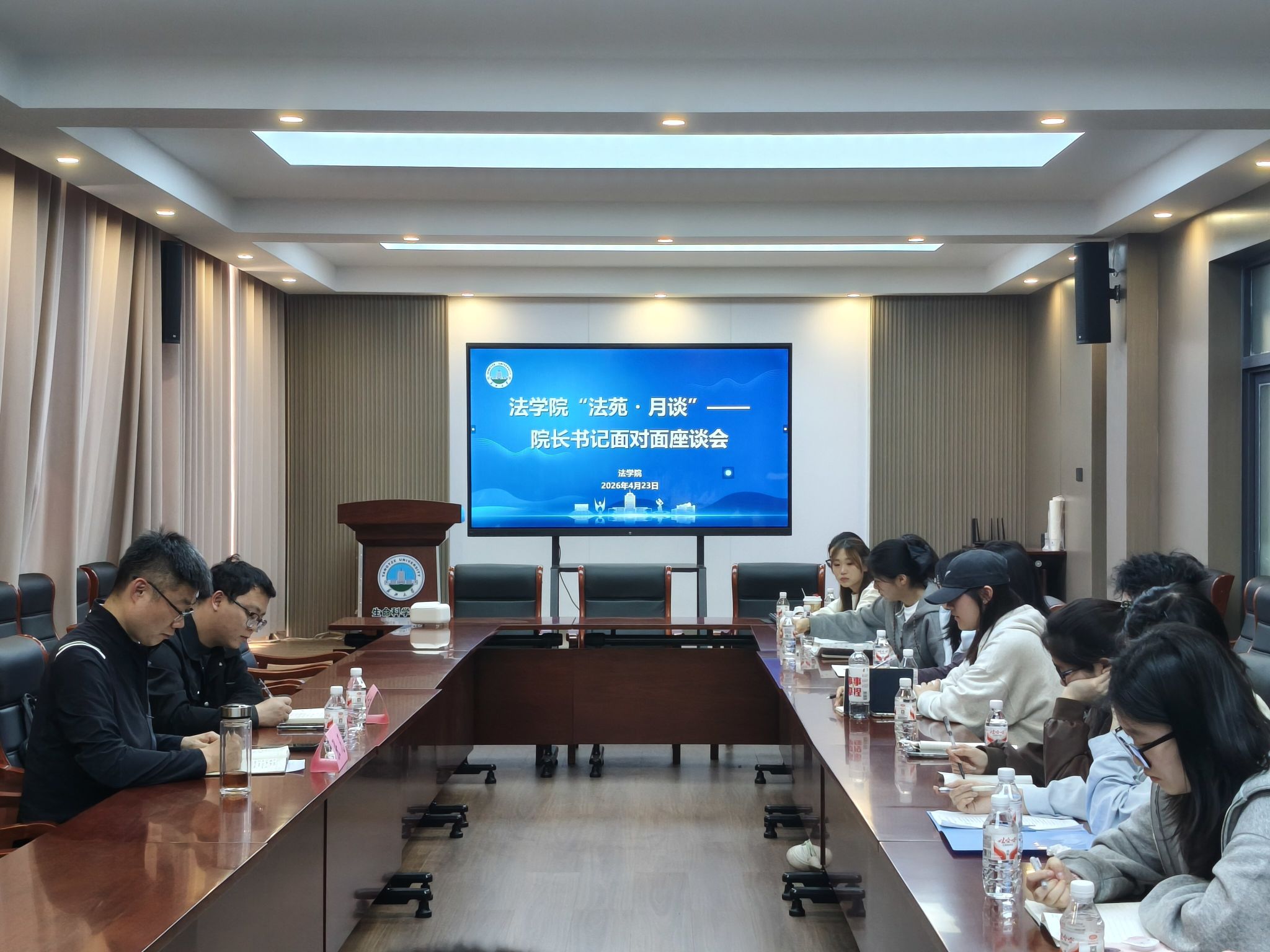 (通讯员 盛文军)“热水能不能多供一会儿?”“法理学课能多讲点案例吗?”“我们转专业班上课太难了……”4月23日,法学院“法苑·月谈”院长书记面对面首场座谈会上,18名大一学生代表把入学以来的困惑与建议,一股脑儿倒给了在场的学院党委书记张凡和学工办主任盛文军。