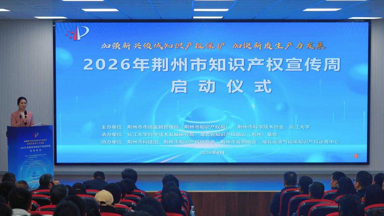 (通讯员 宋卓越)4月23日,2026年荆州市知识产权宣传周启动仪式在荆州市科技馆成功举办。我院54名知识产权志愿者代表受邀参加启动仪式,并全程参与知识产权主题成果展,在实践中深化对知识产权保护工作的认知,活动成效显著、意义深远。