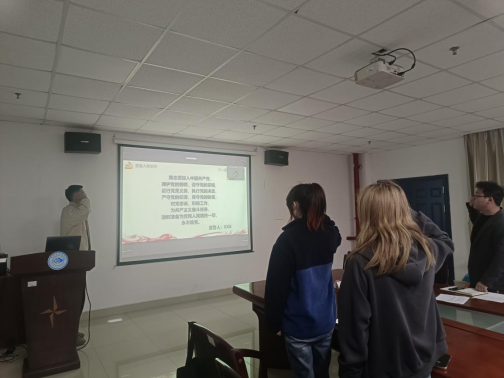 会议伊始,主持人王伟带领大家进行接受预备党员的环节。然后带领全体党员重温入党誓词,全体党员庄严宣誓。随后,党员同志集体诵读《中国共产党章程》第二章的部分内容,通过讲解的方式对中国共产党的纪律性质、五种处分、党的组织制度等相关内容进行学习与巩固。紧接着,大家一起学习微党课——《我说“学习强国”》,跟随记者的视角,重温“两会记忆”。