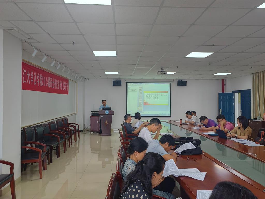 2024年6月20日,法学院在文科楼1110会议室召开6月教职工政治理论学习暨支部主题党日活动,集体学习由学院党委书记周胜美主持。