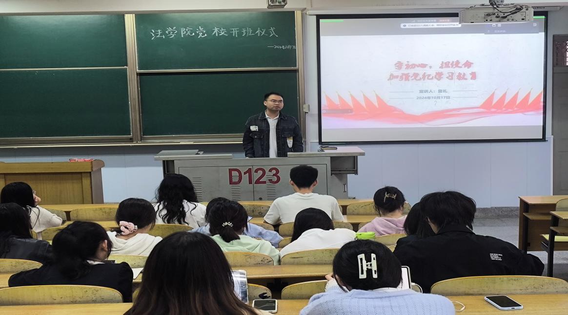 (通讯员郑欢)为切实做好入党积极分子、发展对象以及预备党员的培养、教育和考察,高标准做好党员发展工作,确保新党员的发展质量,2024年10月17日下午4时,法学院于13教D123教室开展了培训会议。本次会议由法学院辅导员雷礼担任主讲人,2024年新推入党积极分子、发展对象及预备党员共同参加。