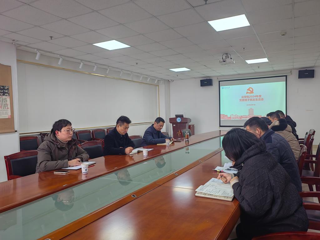 2月21日上午,法学院召开2024年度党员领导干部民主生活会。民主生活会由学院党委书记周胜美主持,党委副书记严星、副院长唐飞参加会议,院长李华成、副院长杨春磊列席会议。学校第九督导组组长、校党委常委、组织部长、统战部长李应军,副组长王学峰、联络员孟鑫到会指导。