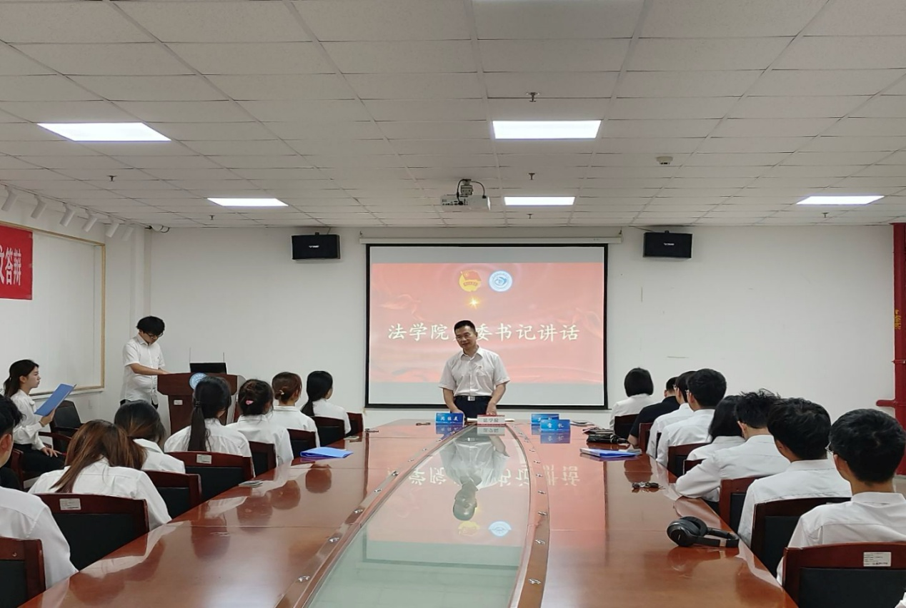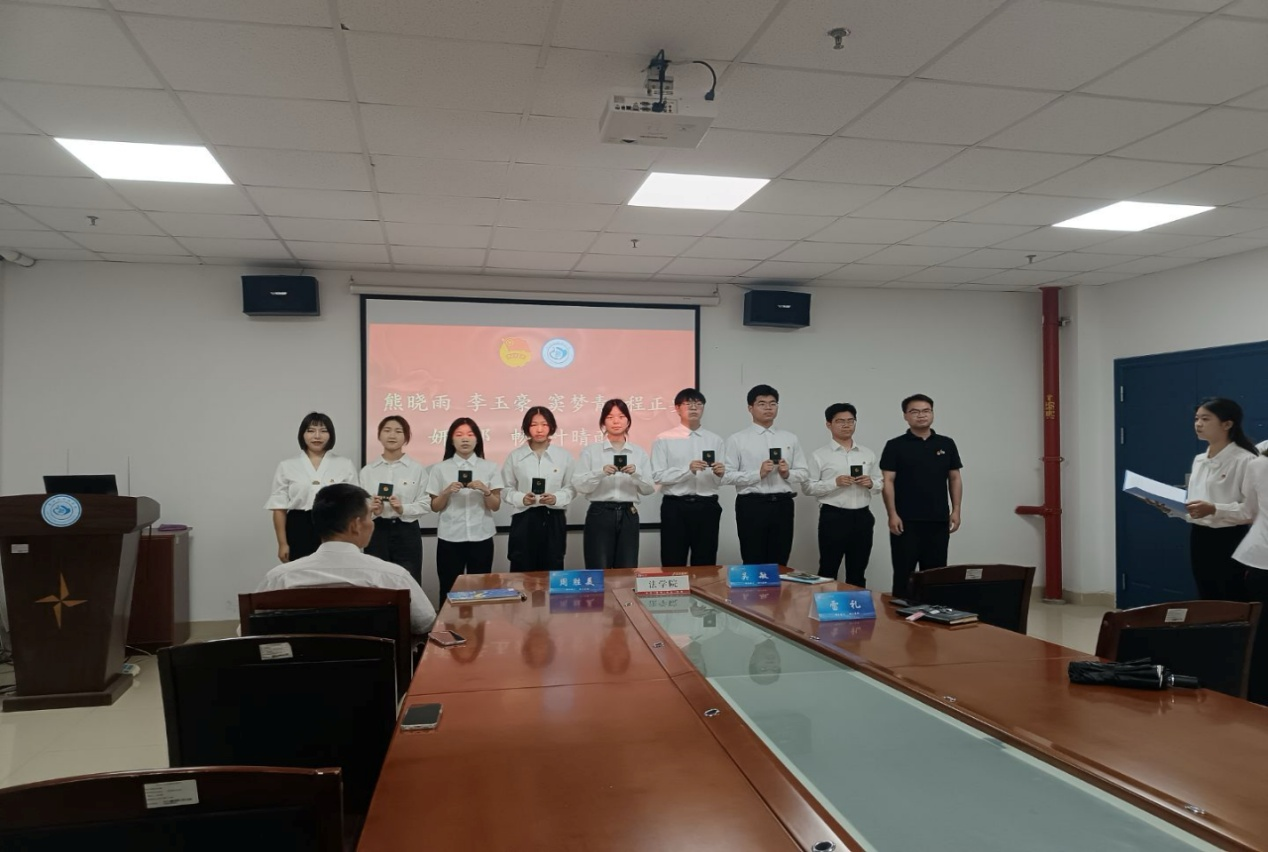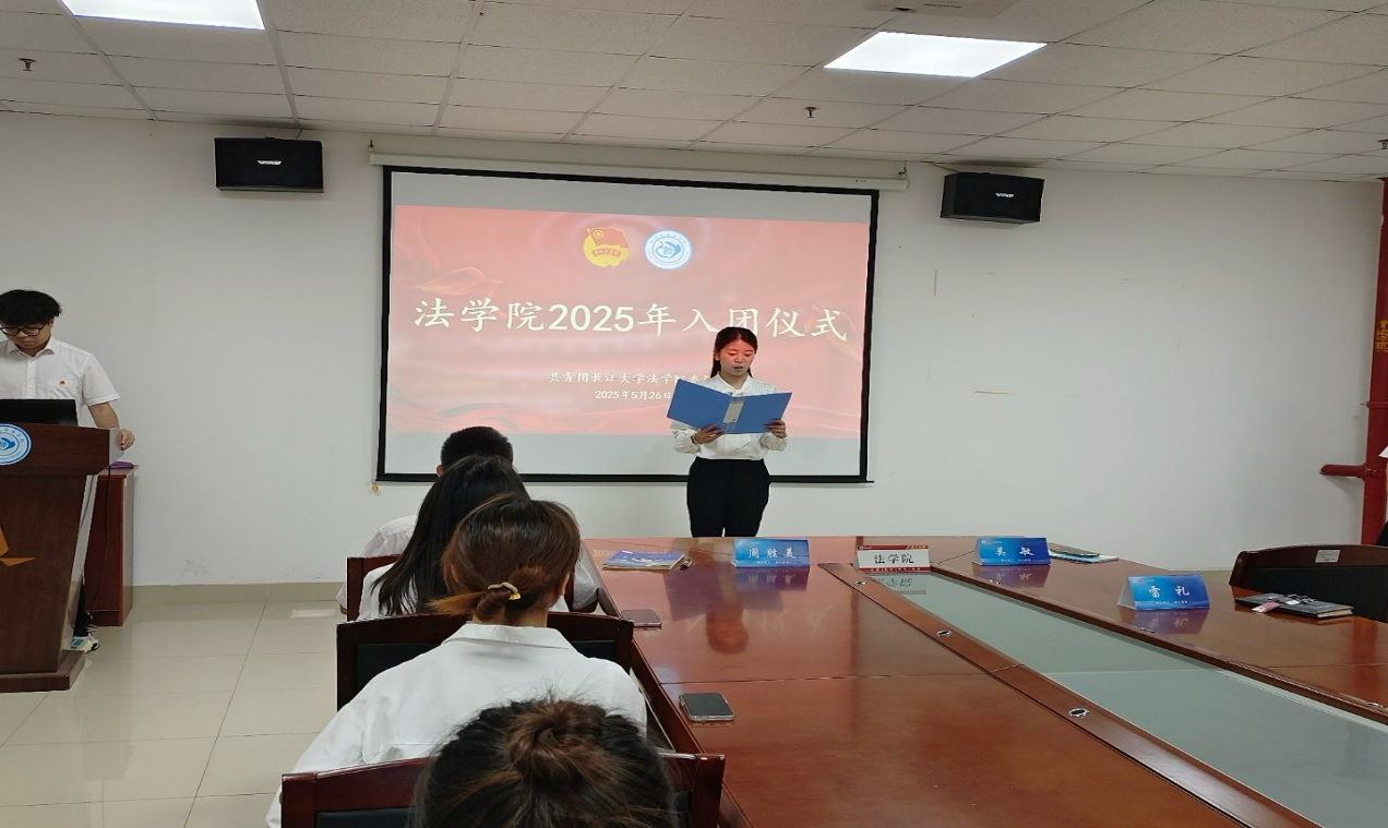 (通讯员 杨婉婷 / 向若涵)为进一步增强共青团员的光荣感和使命感,引导广大青年弘扬五四精神,5 月 26 日下午,法学院在文科大楼 1110 会议室隆重举行 2025 年新团员入团仪式。法学院党委书记周胜美、本科生党支部书记雷礼、团委书记吴敏出席活动,7 名新发展团员及 11 名团员代表共同见证这一庄严时刻。