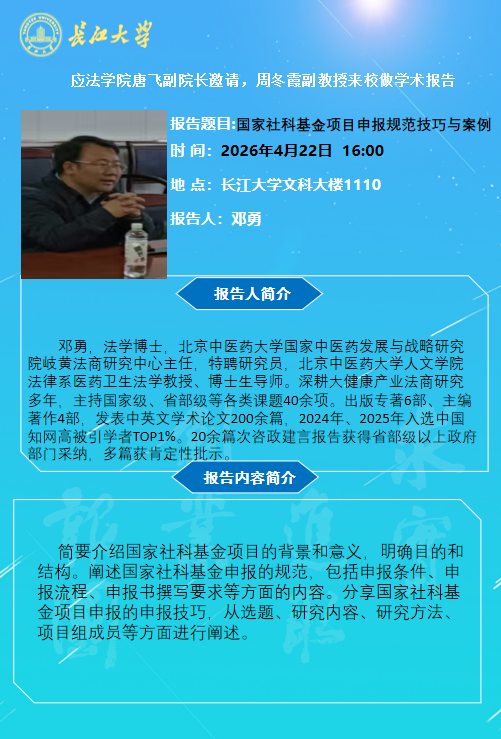 下一条:长江法治讲坛(2026年第6期)外空安全国际治理面临的新挑战及应对