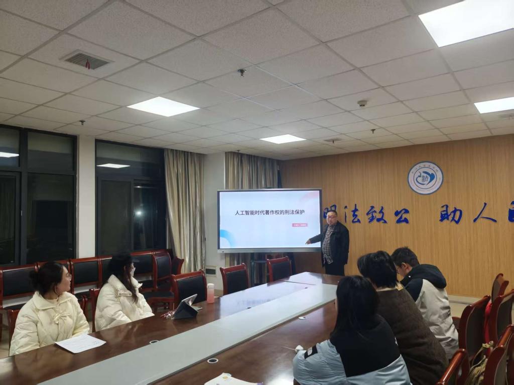 (通讯员:刘依强)2025年11月17日19:00,我院文科大楼203会议室座无虚席,一场紧扣时代脉搏的“求实导师学术沙龙”在此热烈举行。本次沙龙以“人工智能时代著作权的刑法保护”为主题,由我院硕士生导师胡承武副教授主讲,吸引了青年教师及硕士研究生近15人参与,现场学术氛围浓厚,互动交流深入。